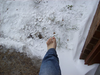 Yes I am this insane. I am trying to win a pair of shoes at MomDot and here is the pic I took to show how bad I want these shoes. I went out barefoot and my hair is wet lol
