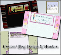 Karen at ABOG Designs can create custom blog designs, backgrounds, headers, blog buttons, event buttons, ad banners, Etsy store banners, and pre-made blog backgrounds. If you have a need, Karen can do it and you will NOT be disappointed. Some of the great designs she has created you can find in her Gallery. I love the wide variety and styles Karen has come up with for various blogs.